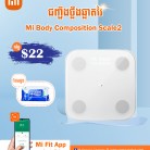 Mi Body Composition Scale 2 តម្លៃ$22 ការរចនារូបរាងស្អាត ស្រាល ទាន់សម័យ មានភ្លើង LED បង្ហាញពីលេខទំងន់ ប្រើ Bluetooth 5.0 , ថ្មពិល 4 គ្រាប់ប្រើបាន 12ខែ មាន G-shaped s...